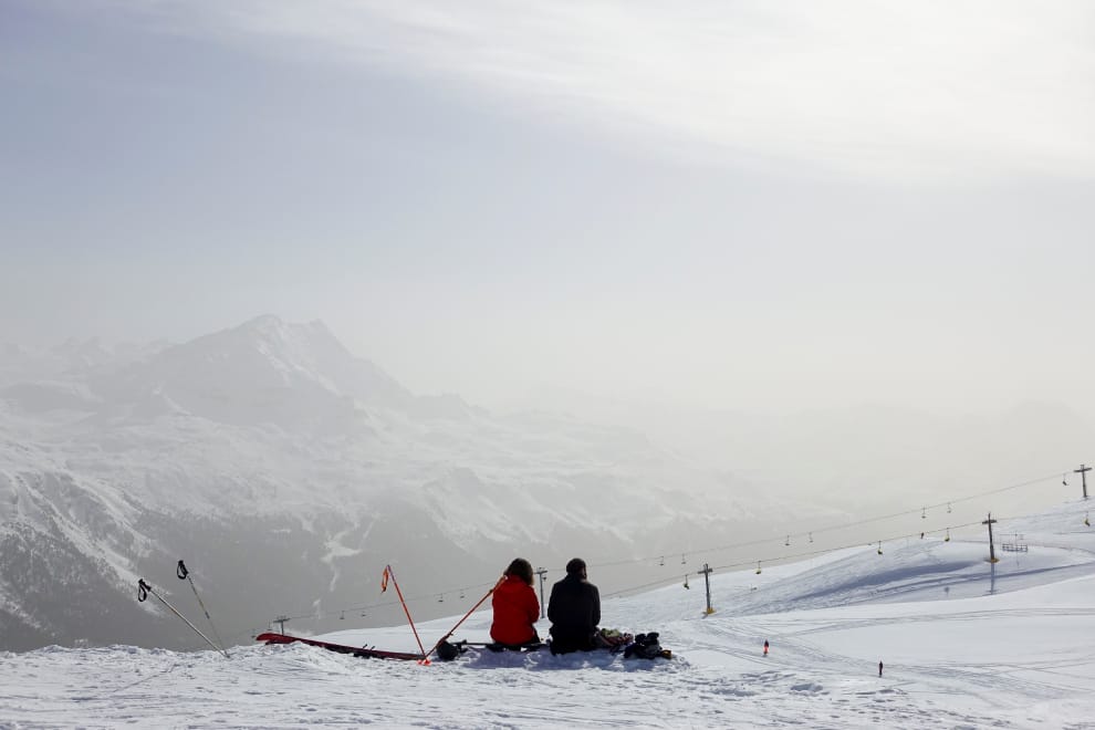 在著名的滑雪勝地聖摩立茲(St. Moritz),從南方撒哈拉沙漠吹來的撒哈拉粉塵,把天空變成了一片霧濛濛的模樣。
