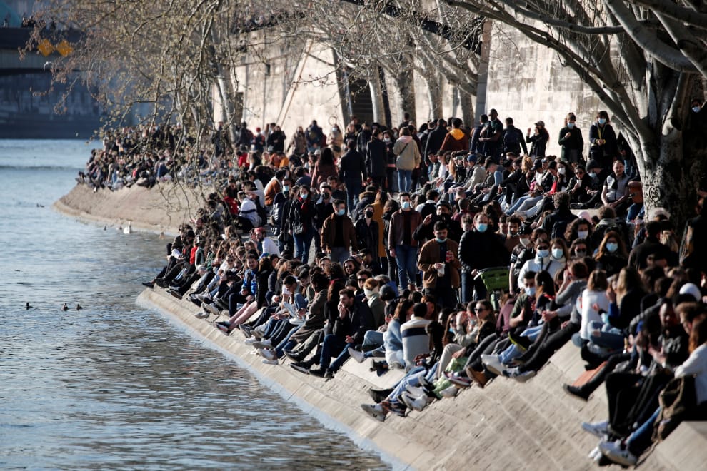 在首都巴黎,民眾們一起擠在塞納河(Seine river)的河畔,享受溫暖的陽光,以及宜人的天氣。