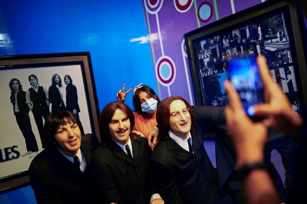 在首都墨西哥城(Mexico City),COVID-19(武漢肺炎)的防疫措施正在逐步解封,電影院、健身房,以及博物館都在慢慢重新開放。畫面中,旅客正在一座蠟像館中,和披頭四(The Beatles)的蠟像合照。
