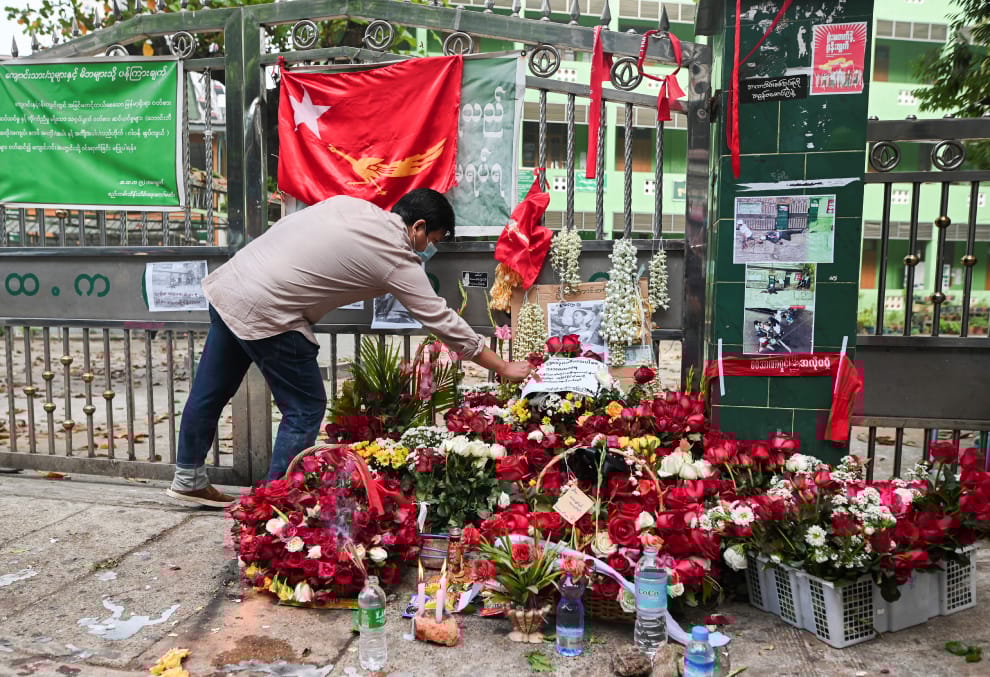 2月28日,緬甸軍警針對反軍方政變的抗議者們進行了強力鎮壓,造成至少 18人死亡,30人受傷的悲劇。在隔天的 3月1日,仰光(Yangon)民眾在一名男子遭槍殺的位置獻上花束,以紀念他的犧牲。