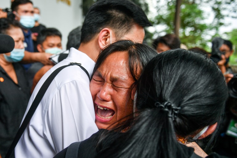在曼谷刑事法庭外,反政府領袖賈圖帕特(Jatupat "Pai Daodin" Boonpattararaksa)被以「冒犯君主罪」(Lese-Majeste law)定罪,且立刻被送往監獄。聽到這個消息,賈圖帕特的母親難以承受地哭倒在親友的身上。
