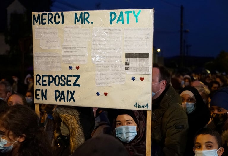 在事發的 10天前,也就是 2020年10月6日,歷史老師帕蒂(Samuel Paty)在主題為「兩難」的課堂上討論言論自由和褻瀆行為之間的關係,他因此提出了一個問題:「到底是要當,或者不當查理(註1)?」