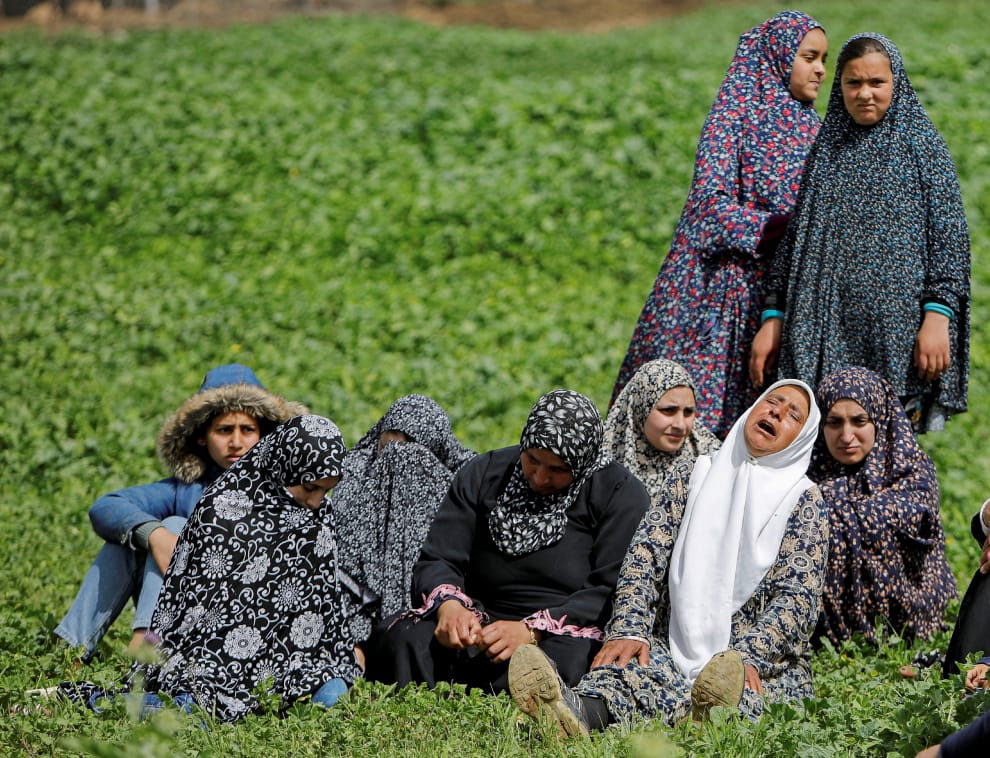 在以色列佔領的約旦河西岸,數名巴勒斯坦女子眼睜睜看著家園遭到以色列軍隊摧毀,有人難掩悲痛地落淚。