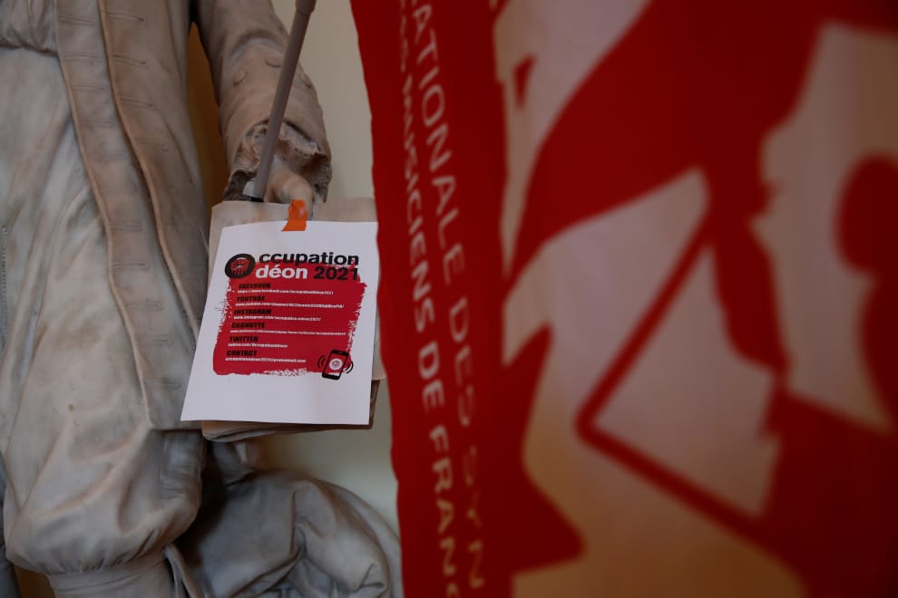 在巴黎奧德翁劇院(Odéon Théâtre de l'Europe),不滿政府為了防疫、遲遲不開放劇院、博物館、電影院、演場會場的工作者齊聚一堂,發起「佔領劇院」的活動,將奧德翁劇院內 17世紀法國劇作家拉辛(Jean Racine)的雕像放上了演藝工會的旗幟。
