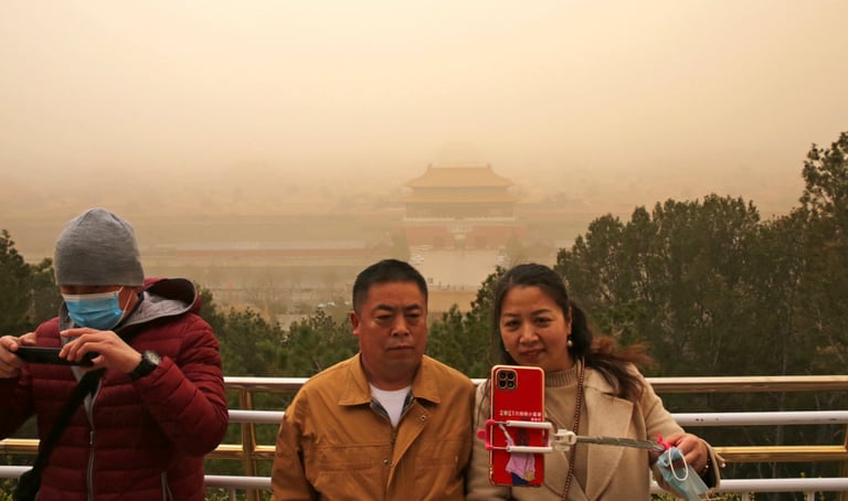 周一(15),中國首都北京和 12個北部省份被號稱是 10年來最嚴重的沙塵暴給吞沒,許多城市一大早放眼望去都是一片滾滾黃沙,能見度極差,有些地方甚至連街道對面的大樓都看不清。