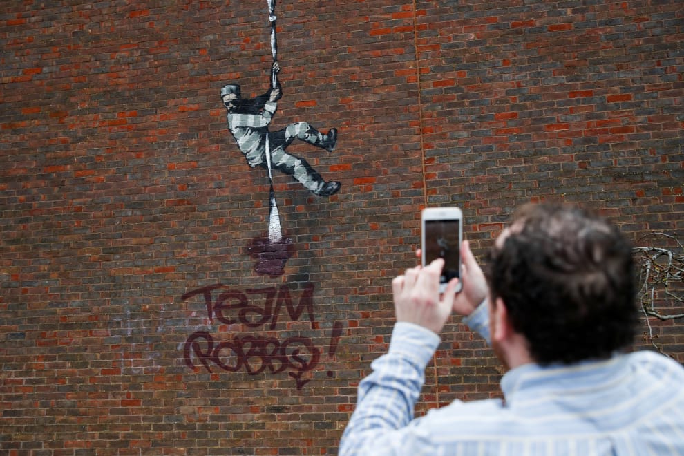 在位於倫敦西方的雷丁鎮(Reading),英國塗鴉藝術家班克斯(Banksy)在一棟廢棄的監獄外牆上畫上逃獄的犯人,他垂降的床單下原本畫著一台打字機,代表曾在該監獄服刑的愛爾蘭劇作家王爾德(Oscar Wilde)。
