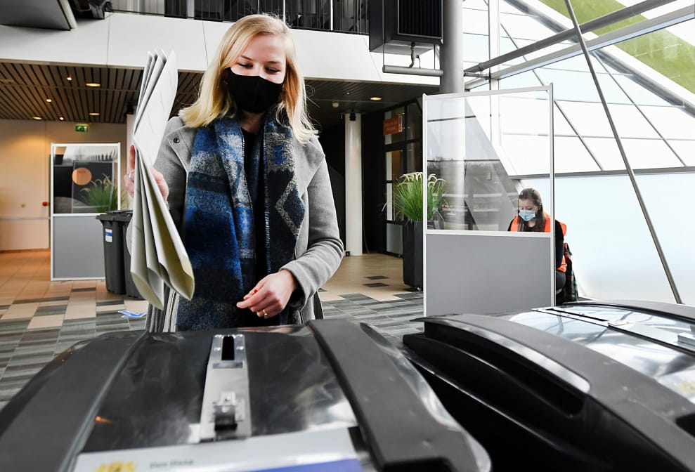 在荷蘭第三大城海牙,一名女子前來參加從 15號舉辦到 17號的荷蘭國會大選,希望能順利選出新內閣。