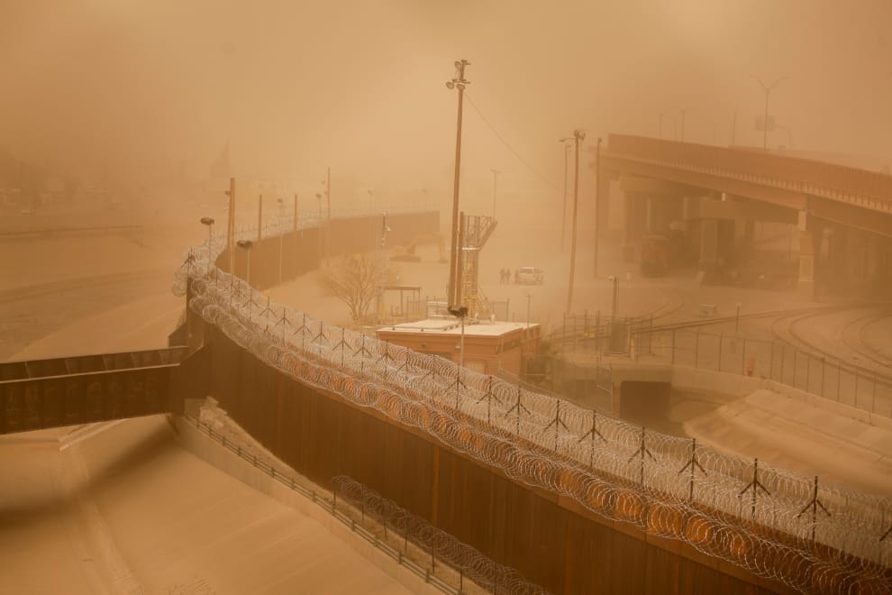 在美墨交界的華瑞茲城(Ciudad Juarez),可以看到滾滾黃沙遮蔽住高聳的圍牆。