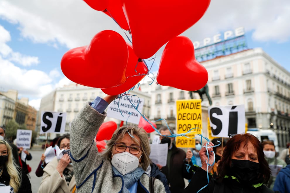 在首都馬德里,支持安樂死合法化的民眾齊聚一堂,希望西班牙國會能將安樂死合法化。