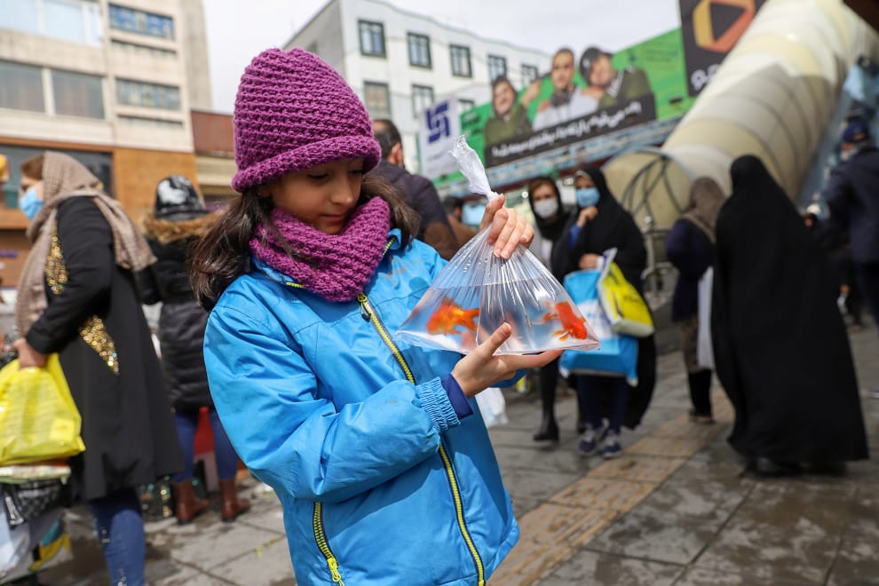 在首都德黑蘭,準備迎接新年──諾魯茲節(Nowruz)的民眾開始準備起金魚。根據傳統,伊朗人會在諾魯茲節為期 13天假期的最後一天將金魚放生求好運,可是這往往會造成金魚的死亡,每年都有將近百萬隻金魚去世。