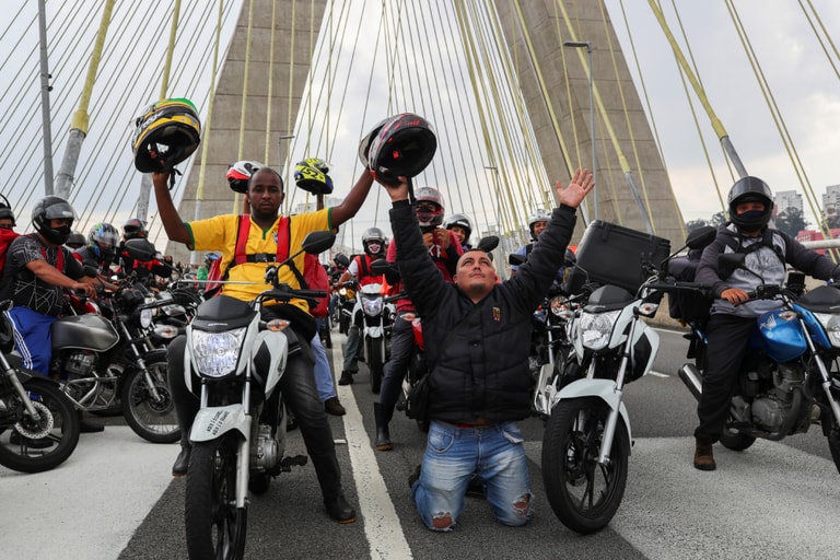 在南半球第一大城聖保羅,來自外送APP Uber Eats、Rappi等的外送員上街抗議,要求更好的工作環境和條件。