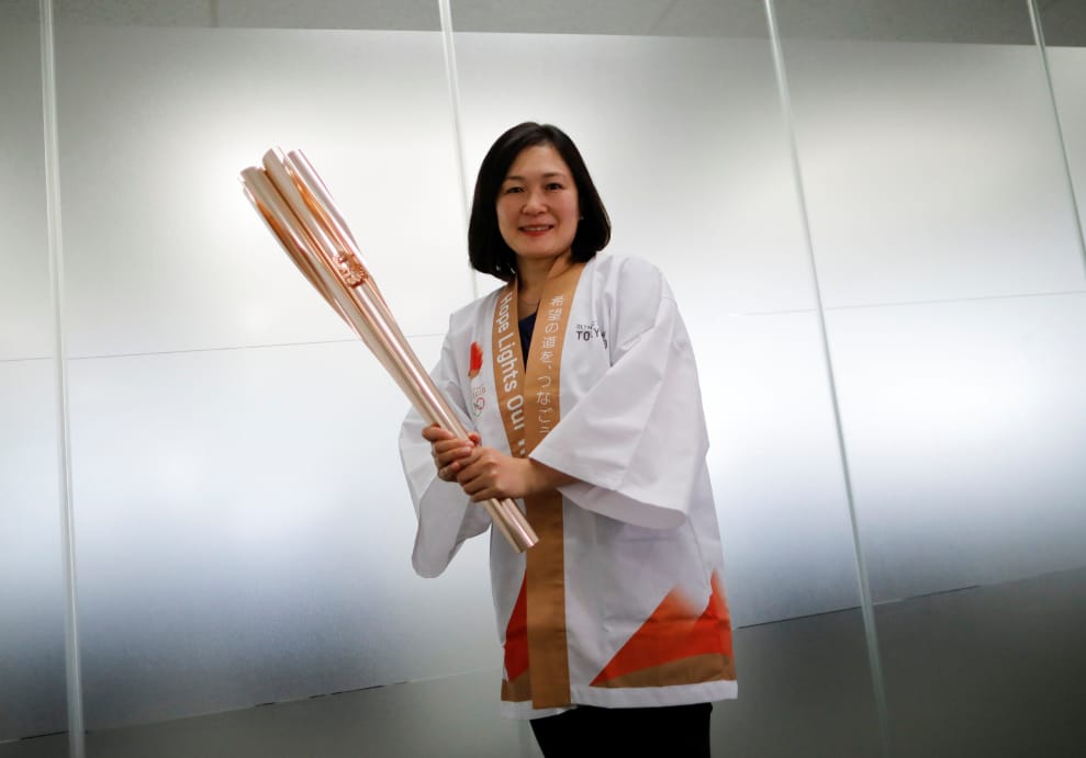 隨著東京奧運聖火接力即將在本月 25號登場,負責策劃的東京奧運國際協作總監河村裕美手持聖火火炬供媒體拍照。