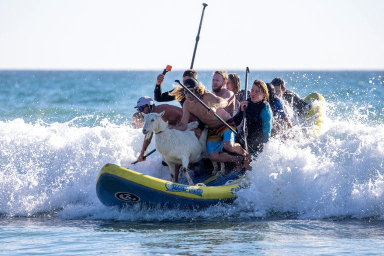 該如何吸引一隻山羊的注意力,進而說服牠跟你一起站上衝浪板衝浪?2018年的一份研究透露了真正的秘訣:甜甜的微笑。