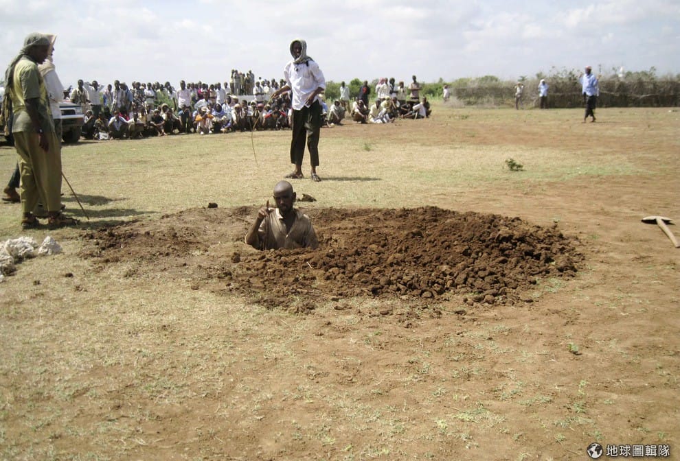 照片中是索馬利亞一名48歲的男子,他因為非法發生性行為被判石刑。