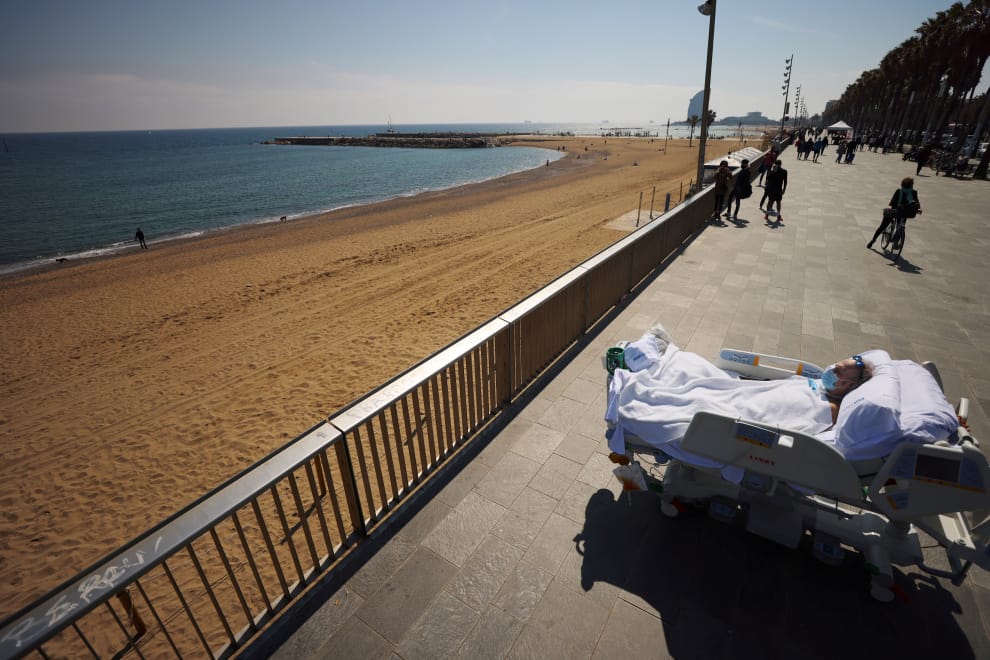 在西班牙大城巴塞隆納的海邊,63歲的瘖啞人森德拉(Joan Soler Sendra)在罹患COVID-19(武漢肺炎) 114天後,決定接受德瑪爾醫院(Hospital del Mar)醫師卡斯特爾維(Andrea Castellvi)的建議出外看看海,試試醫師口中的「海洋療法」(sea therapy)。