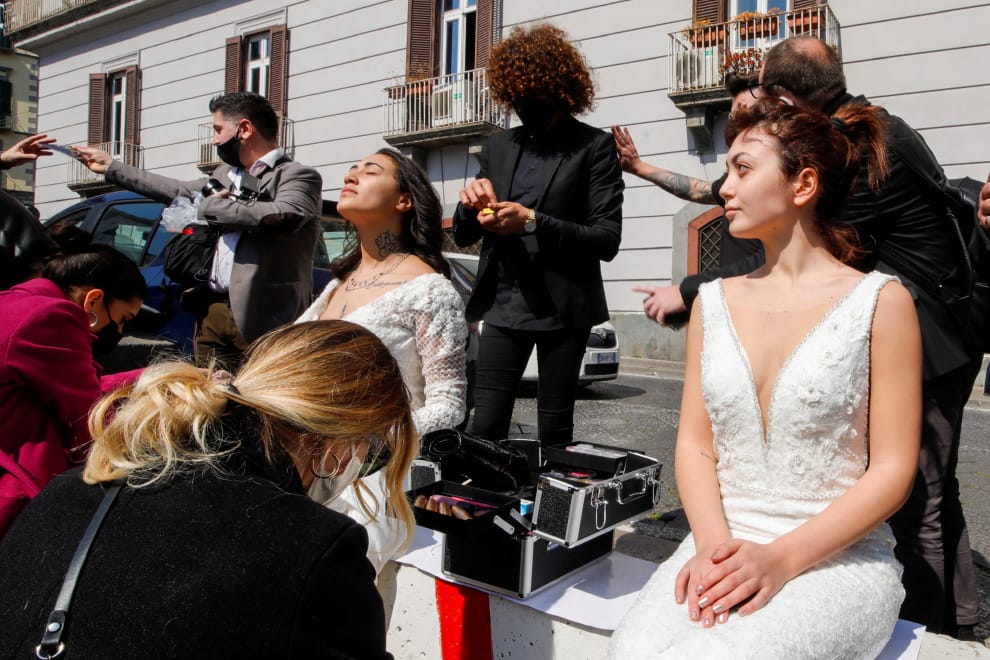 在義大利大城拿坡里的平民表決廣場(Plebiscito square),義大利的化妝師、髮型設計師在廣場上聚集起來,抗議政府的封鎖令讓他們已經好幾個月都沒有收入進帳。