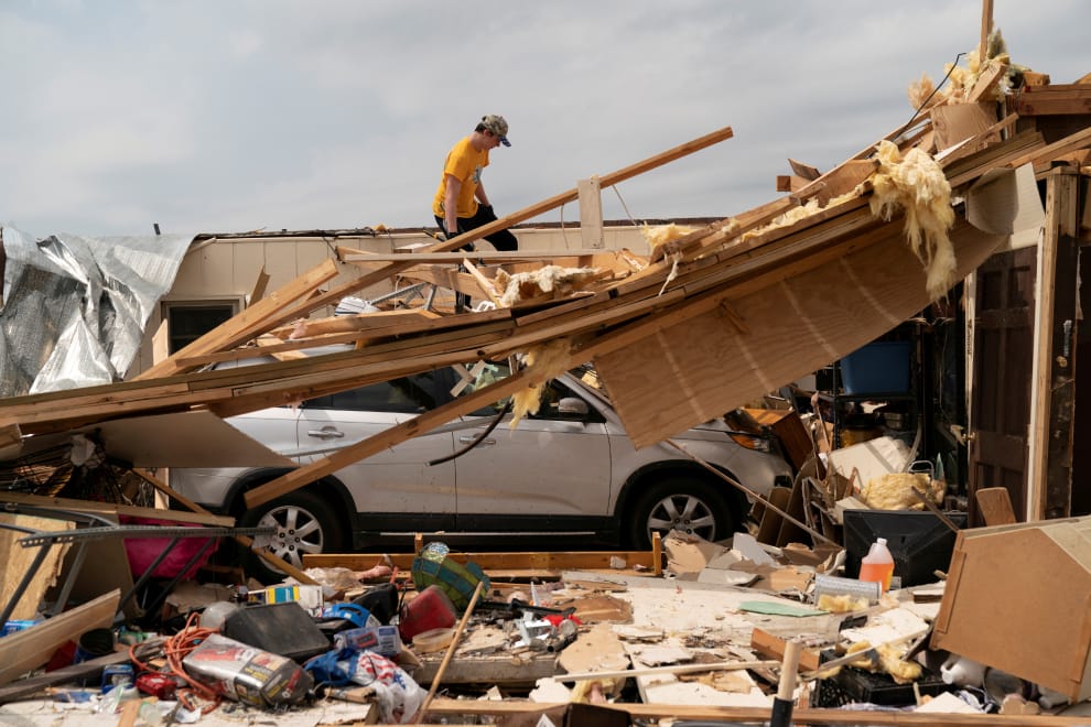 在美國阿拉巴馬州的奧哈治市(Ohatchee),在數個龍捲風席捲過後,梅森(Nathan Mason)爬上祖母房子僅存的殘骸,檢視整棟房子的損壞程度。