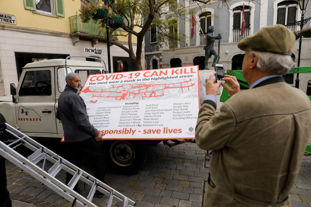 在英國的海外領地直布羅陀(Gibraltar),近來英國為民眾接種COVID-19(武漢肺炎)疫苗的計畫進展順利,當局也稍稍放鬆了出門就得戴口罩的規定。在 28號這天,工作人員一起拆下街道上的COVID-19(武漢肺炎)防疫警示,宣告這場疫情即將過去。