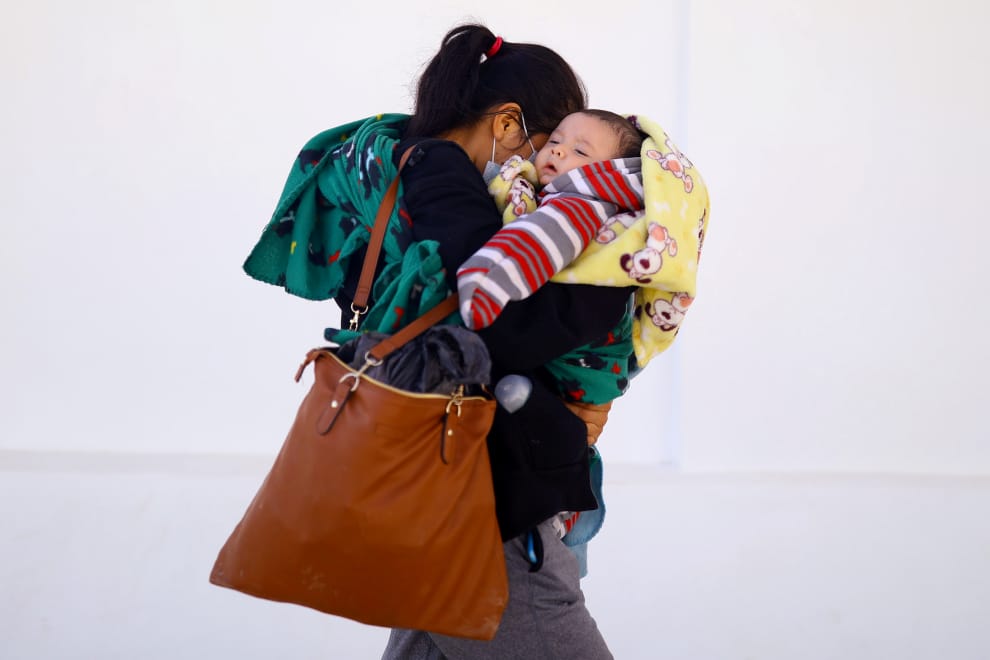 在位於美墨邊界的華瑞茲城(Ciudad Juarez),來自瓜地馬拉的媽媽克拉麗莎(Clarisa)在被美國遣返後,抱著孩子匆匆走在華瑞茲城的路上。