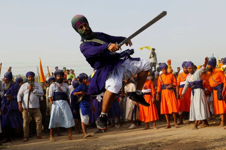 在印度首都新德里郊區的辛胡鎮(Singhu),近來印度農夫組成的農業改革法案示威隊伍已經遊行至此,而趁著色彩節(Holi)期間,一名錫克武士便在眾人的圍觀下,表演了一手印度傳統武術「加特卡」(Gatkha)。