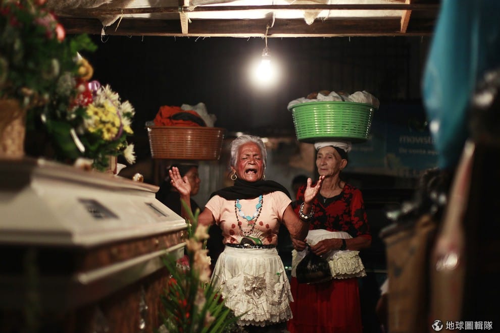 一名街頭小販正在唱誦祝禱,他正在與其他人一起為利薇拉(Silvia Dinora Rivera)守靈,利薇拉曾和母親一起在這邊工作。37歲的利薇拉遭到她的丈夫綁在椅子上,並澆上汽油燒死。