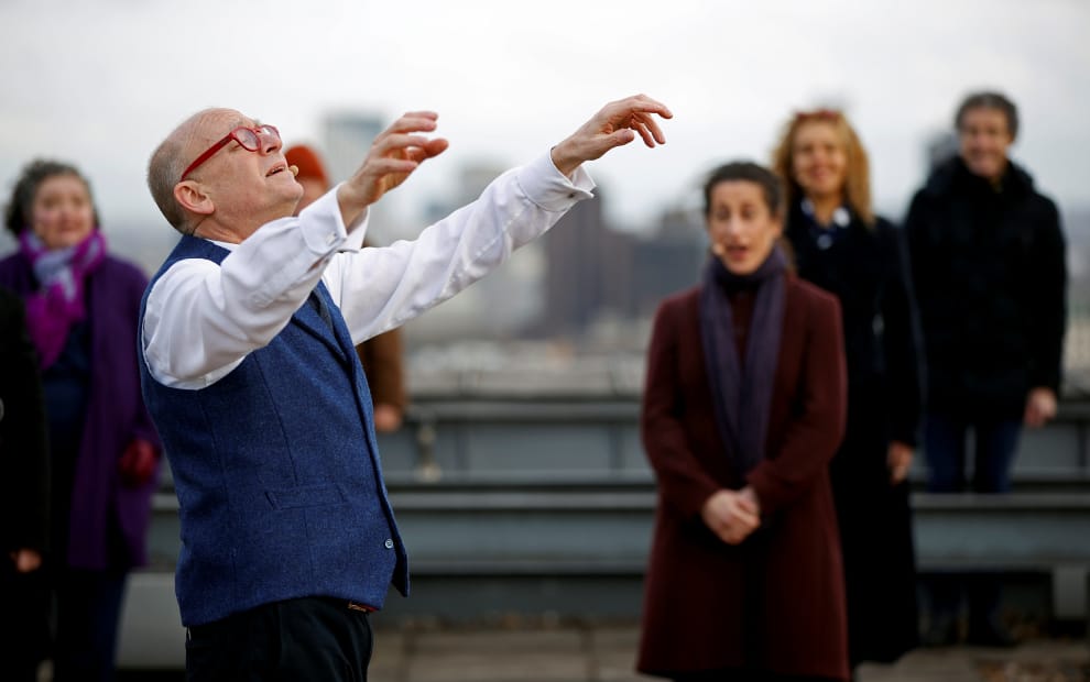 在英國首都倫敦的倫敦皇家歌劇院(London's Royal Opera House),倫敦皇家歌劇院合唱團的指揮斯波丁(William Spaulding)在屋頂上指揮團員們演唱歌曲,慶祝良善周五(Good Friday,即耶穌受難日)的到來。