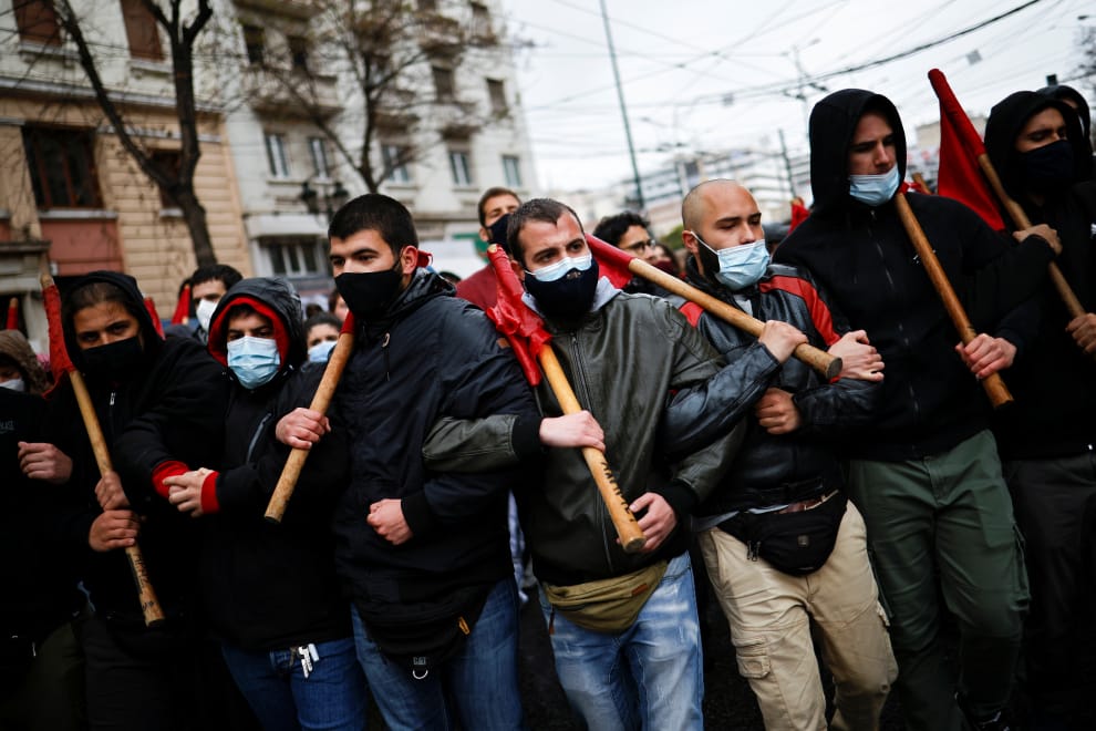 在希臘首都雅典(Athens),學生們帶上旗幟、口罩,到街上舉辦示威,抗議希臘政府打算在大學校園內設立「大學警察」(university police)一職。