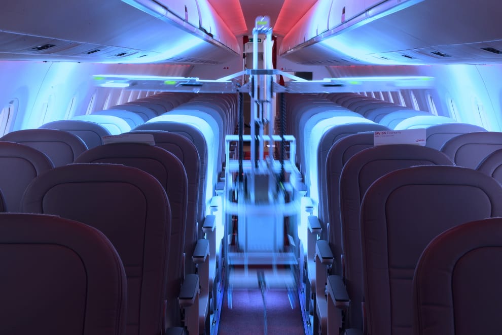 在瑞士大城蘇黎世(Zurich)的蘇黎世國際機場,瑞士赫維提克航空公司(Helvetic Airways)正在試用科技公司UVeya開發的紫外線消毒機器人。