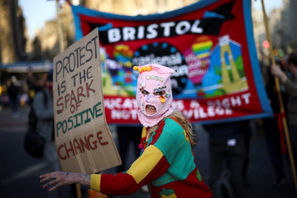 在 3號這天,不僅是畫面所攝的城市布里斯托(Bristol),在英國倫敦、伯明罕等地都有大批民眾上街展開了「終結法案」(Kill the Bill)的抗議活動。他們在示威中反對《警察與犯罪法案》(Police and Crime Bill),認為這項法案將阻止未經警方批准的抗議活動,並因此限縮人民的言論自由權利。