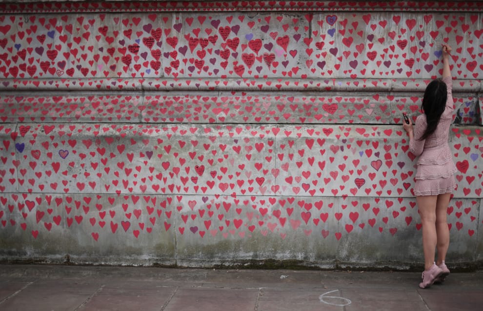 為了紀念所有因COVID-19(武漢肺炎)而死去的英國人,倫敦聖湯瑪斯醫院(St Thomas' Hospital)旁成立了「全國肺炎紀念牆」(National Covid Memorial Wall),上頭貼了約 15萬個愛心,並寫滿了民眾的支持話語。