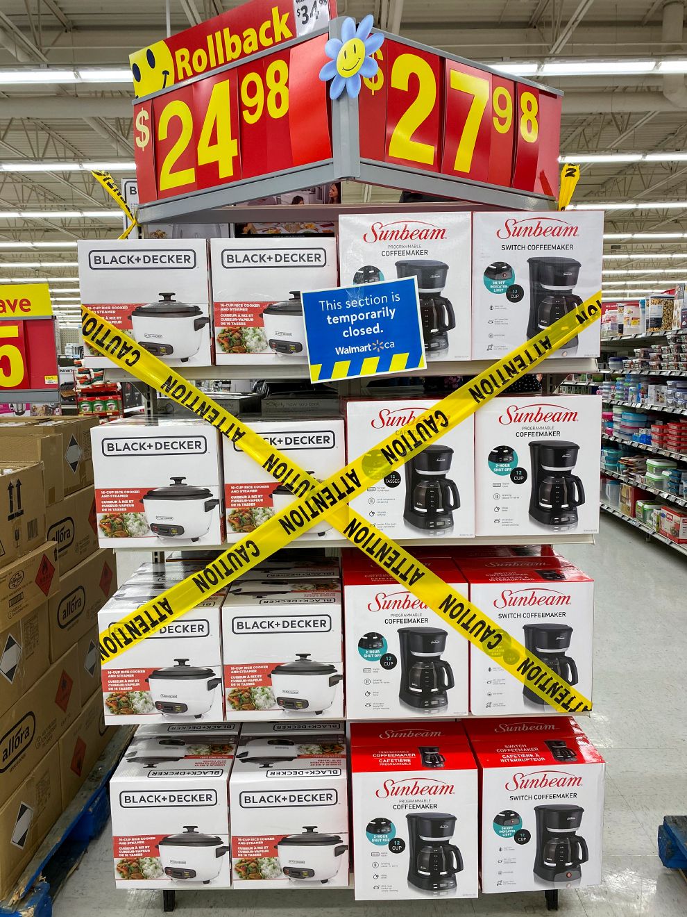 因為COVID-19(武漢肺炎)疫情加重,加拿大安大略省(Ontario)的首府多倫多(Toronto)自本月 8號開始封城四個星期,實體店面則因此不得販賣非民生必需用品。在一間沃爾瑪超市(Walmart),部分貨架於是拉上了大大的封鎖線,不讓顧客進行消費。