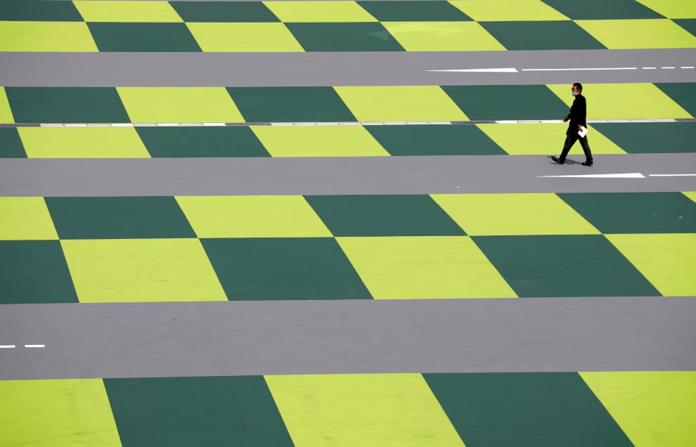 首圖故事:在日本,一名男子走過了色彩有如棋盤的停車場......
