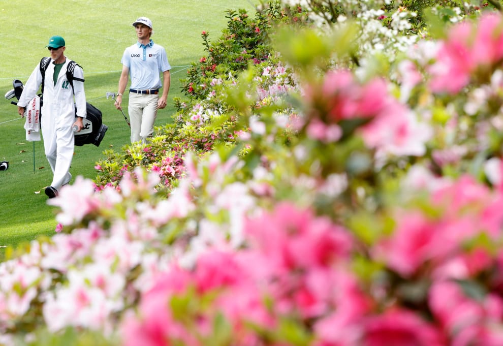 在喬治亞州(Georgia)的城市奧古斯塔(Augusta),第 85屆高爾夫球比賽「美國名人賽」(Masters Tournament)正在奧古斯塔高爾夫球俱樂部(Augusta National Golf Club)裡舉行。畫面中,一名高爾夫球選手和他的球僮於比賽中途經過了一處盛放的花叢。