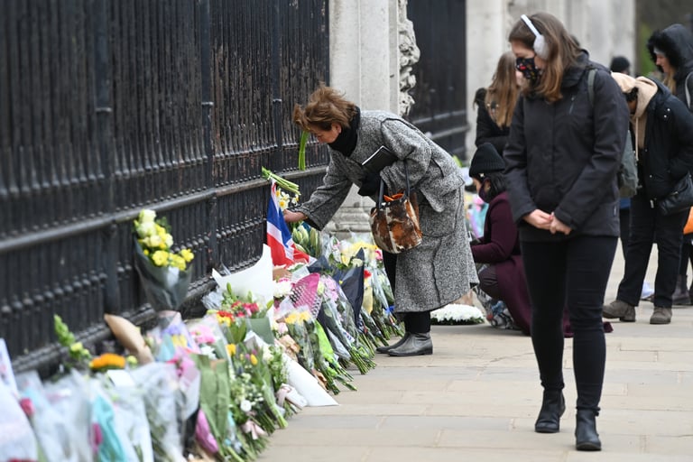 不過這幾天下來,每天依舊有大批民眾帶著花束和卡片,到白金漢宮和溫莎堡外獻花悼念親王。