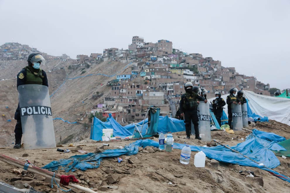 在利馬省(Province of Lima)的喬里約斯區(Chorrillos),一些無家可歸的民眾於歷史保護區索拉爾山(Morro Solar)上搭建了應急帳篷,並就此住了下來,而秘魯當局在發出多日要求他們離開的命令卻未果後,終於在 14號這天派出鎮暴警察來強制驅離他們。