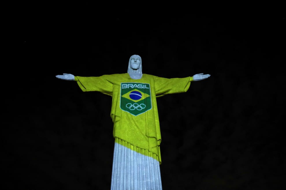 而為了慶祝東京奧運再過 100天就要到來,巴西奧運委員會以光雕的方式,讓里約熱內盧(Rio de Janeiro)的救世基督像(Christ the Redeemer)穿上了繪有巴西國旗和奧林匹克五環的黃綠色衣服。