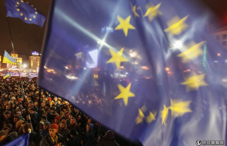 學生們舉著歐盟的旗幟表達抗議,他們表示不會成為東西方國家之間的戰場,烏克蘭的總統表示會出席歐盟的會議,並解釋為什麼他最後決定不加入歐盟