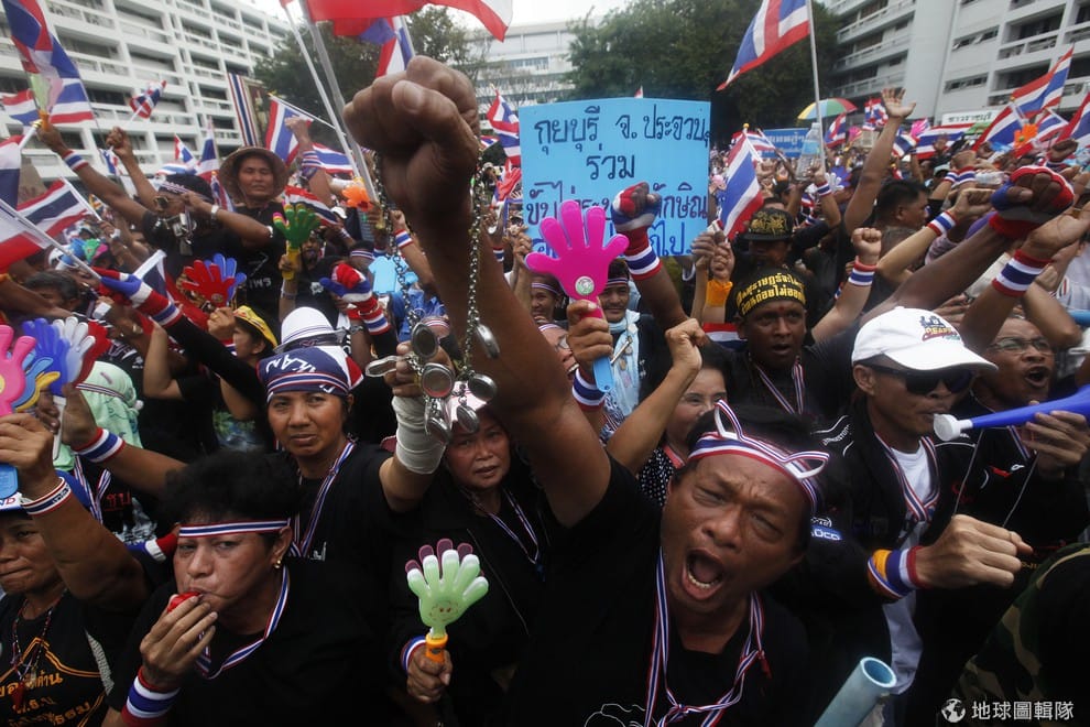 反政府、要總理盈拉下台的示威民眾大喊抗議
