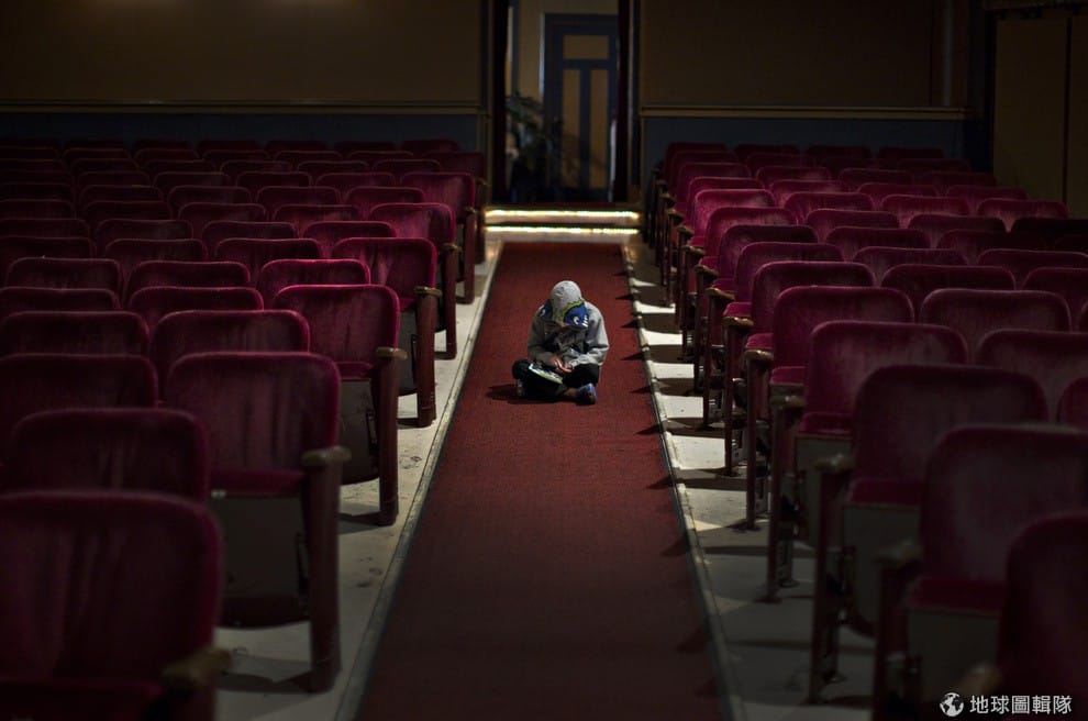 小男孩拿著電動遊戲玩的專心,一旁他的媽媽正在預演一會兒的雜技表演。派翠西亞戲院(The Patricia Theatre)在過去不只會播放電影,也會展出最新的時裝秀,這家戲院早在1913年就已經存在,甚至也曾播放過默片娛樂大眾。這家老戲院所在的包威爾河區域,其他戲院都已經關門,這也表示派翠西亞戲院是當地第一間也是最後一間戲院