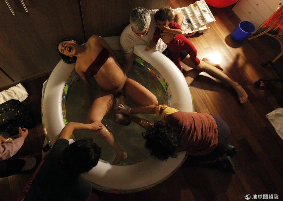 照片中的米特(Manuela Mitre)在產婆的協助下努力生下她的第二名孩子,她的丈夫和女兒在旁陪伴她。她們決定要在家中生下第二名孩子,米特在產婆的協助下在溫水中產下小孩,產婆說溫水可以模擬出子宮中的狀態
