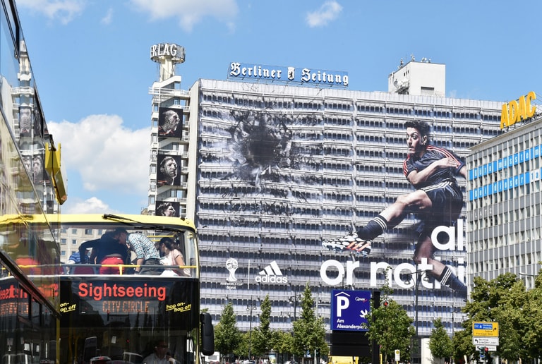為了解決龐大的維修需求,羅馬市政府近日也開始對國定古蹟之外的公共建築試行「廣告交換」方式,第一個案例是羅馬市區一座國立小學,該校園是由知名建築師設計的百年歷史建築,在今年3月起的兩年整修期間中,學校建築外牆將張貼贊助商的大型海報,廣告收益用作維修經費。