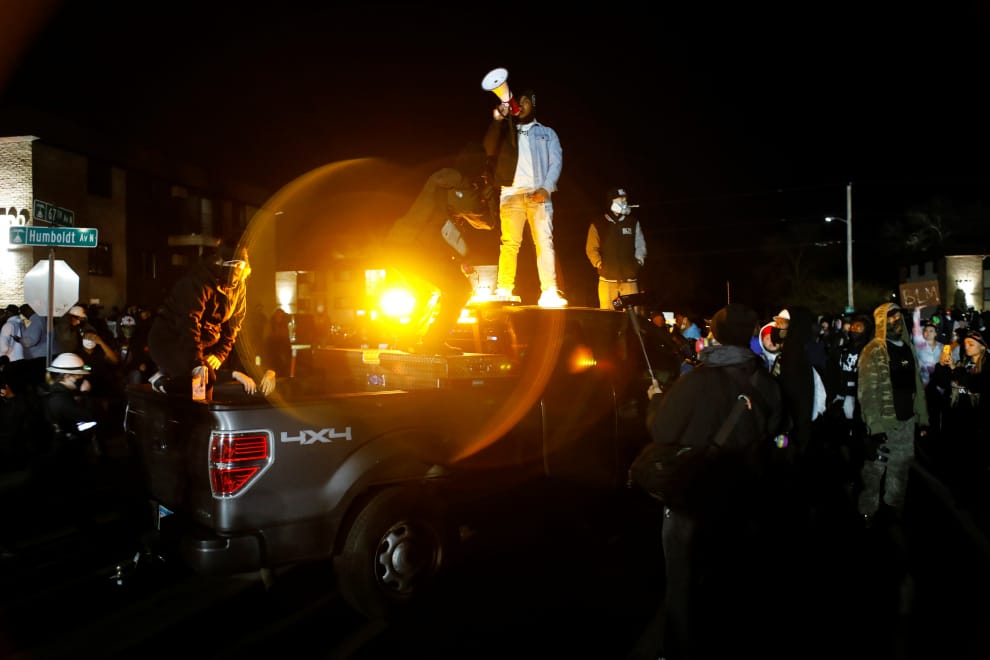 在明尼蘇達州(Minnesota)的布魯克林中心(Brooklyn Center)警局外頭,針對本月 11號,非裔男子萊特(Daunte Wright)遭警員波特(Kim Potter)誤殺的抗議還在持續進行中。在抗議現場,人們不斷高呼著「沒有正義、沒有和平」的口號。