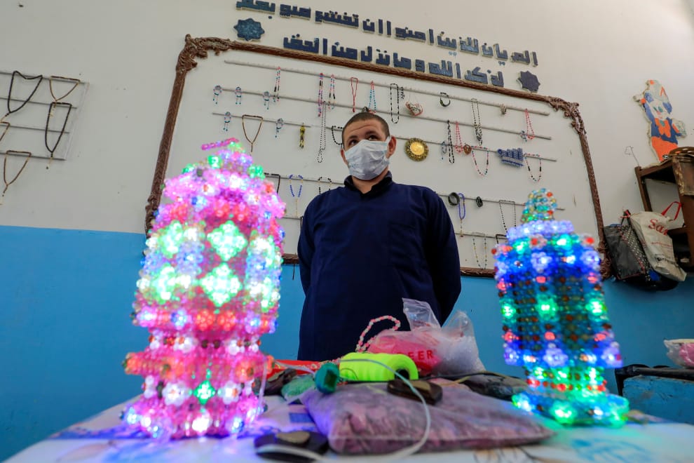 在靠近埃及第二大城亞歷山卓(Alexandria)的阿拉伯堡監獄(Borg el-Arab prison),獄方開放媒體參觀監獄裡的手作坊,圖為受刑人和他的作品合照。