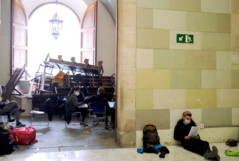 在巴塞隆納大學,學生們將一棟校園建築的出入口給堵住,藉此要求大學重視他們希望受教權平等的訴求,包含碩士、大學部學費價格統一、實習期間強制給薪,並且站出來支持因為捍衛公立大學而被定罪者無罪釋放。