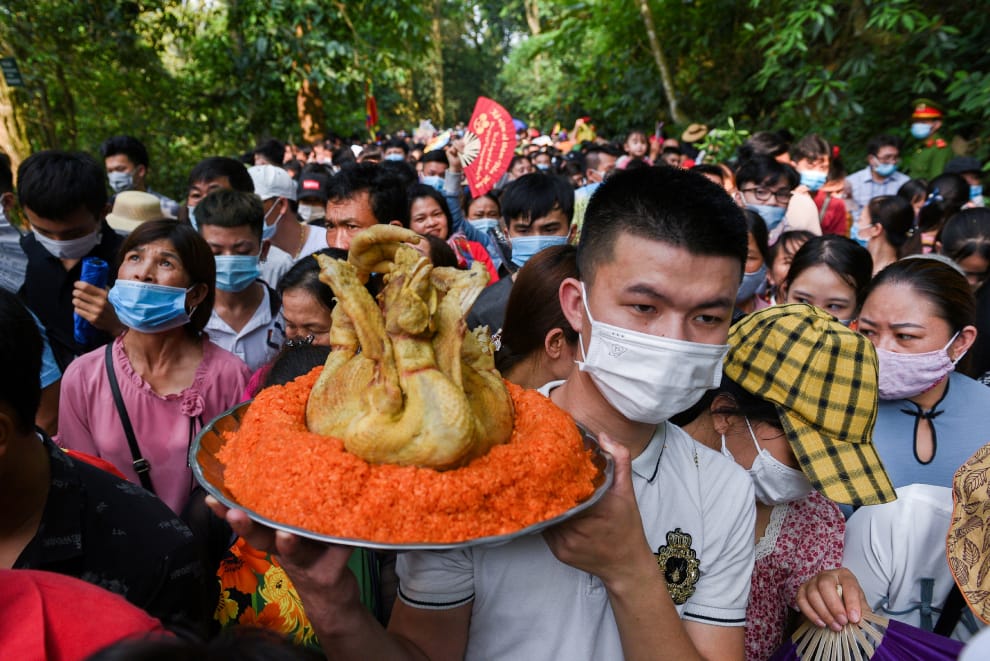 在越南東北部的富壽省鬆綁防疫規定後,人們來到雄王廟前慶祝雄王節,這個節日是為了紀念越南開國君主雄王而設。