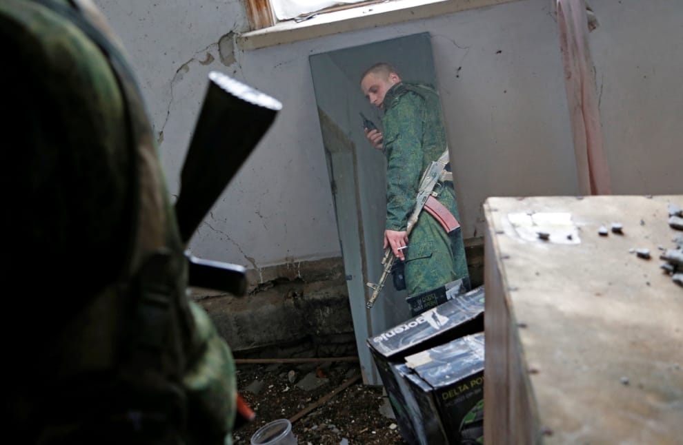 在自行宣布獨立的「盧甘斯克人民共和國」(Lugansk Narodnaya Respublika,LNR)內,一名親俄武裝分子就戰鬥位置,等待上級的進一步指示。