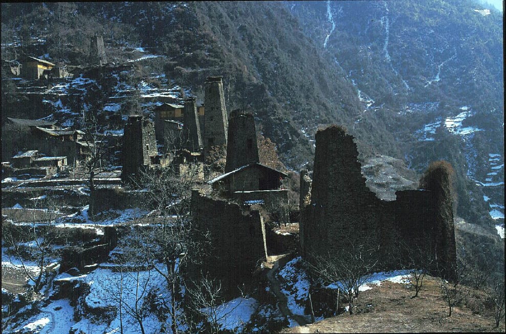岷江切過青藏高原邊緣形成高山間的深谷,四川方言稱之為「溝」。村寨一般聚居在每個溝的半山腰。我們熟悉的「九寨溝」,意思就是一個溝中有九個寨。