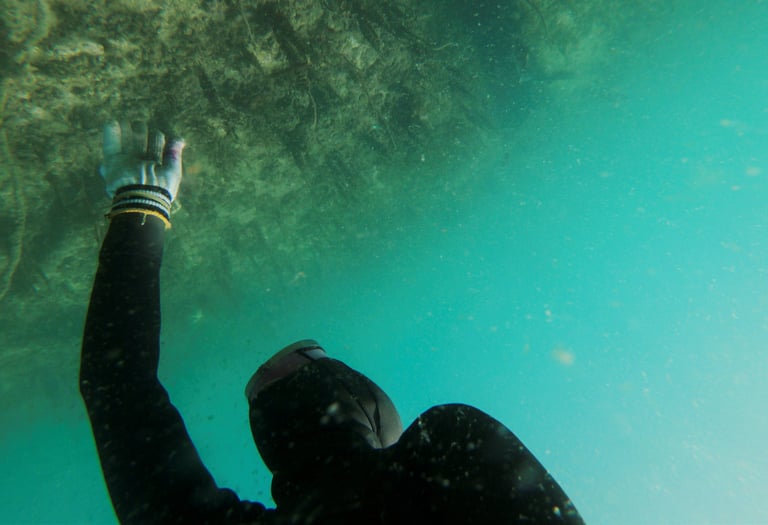 在南韓南邊的巨濟島海外,陳昭熙已經在這裡擔任海女 6年了,她和她的同伴們會潛入冰冷的水裡,一起採摘海底的鮑魚、海螺、海草以及其他海洋生物,然後再將這些漁獲賣給當地市場。