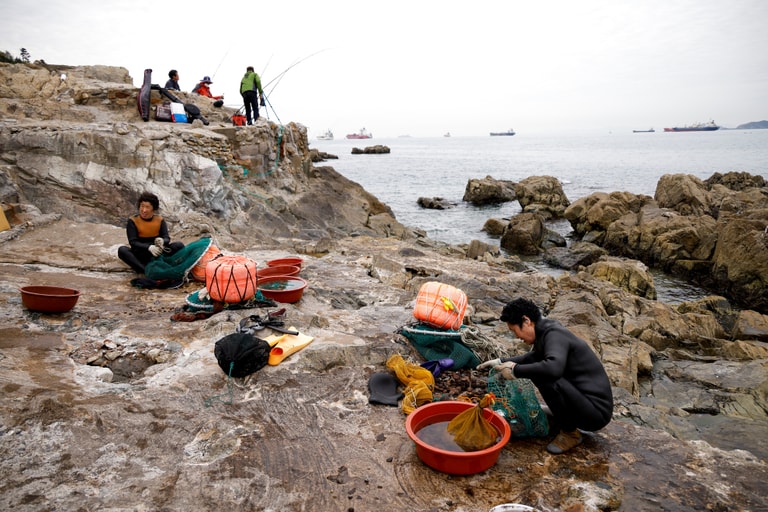 這是南韓的海女——當地一種延續數個世紀、以無氧自由潛水的方式到海底採摘漁獲的古老傳統職業。