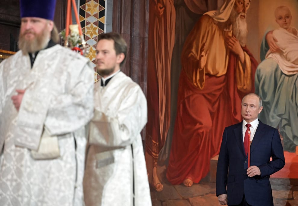 在俄國首都莫斯科的基督救世主主教座堂(Cathedral of Christ the Saviour),周日(2)俄國總統普亭(Vladimir Putin)也一起出席了東正教的復活節禮拜。